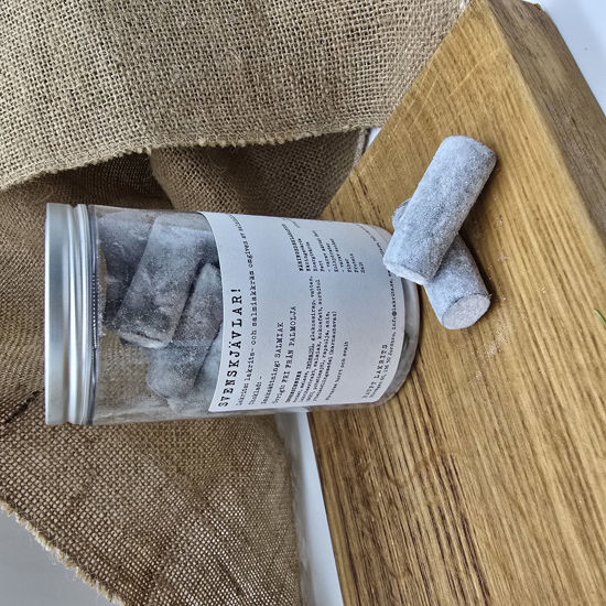 Socker, melass, vetemjöl, glukossirap, vatten, lakritsextrakt, salmiak, kokosfett, sorbitol (E420), potatismjöl, rapsolja, anis, ytbehandlingsmedel (karnaubavax)